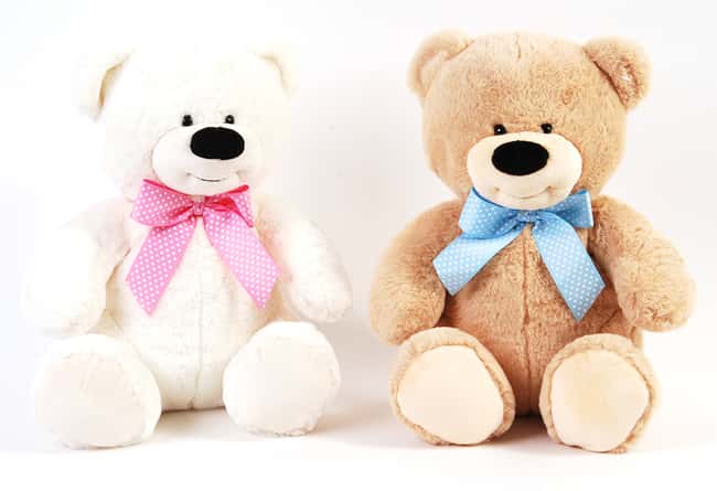 Valentine's Day plush teddy bears with bow tie. Comes in 2 assorted colors.